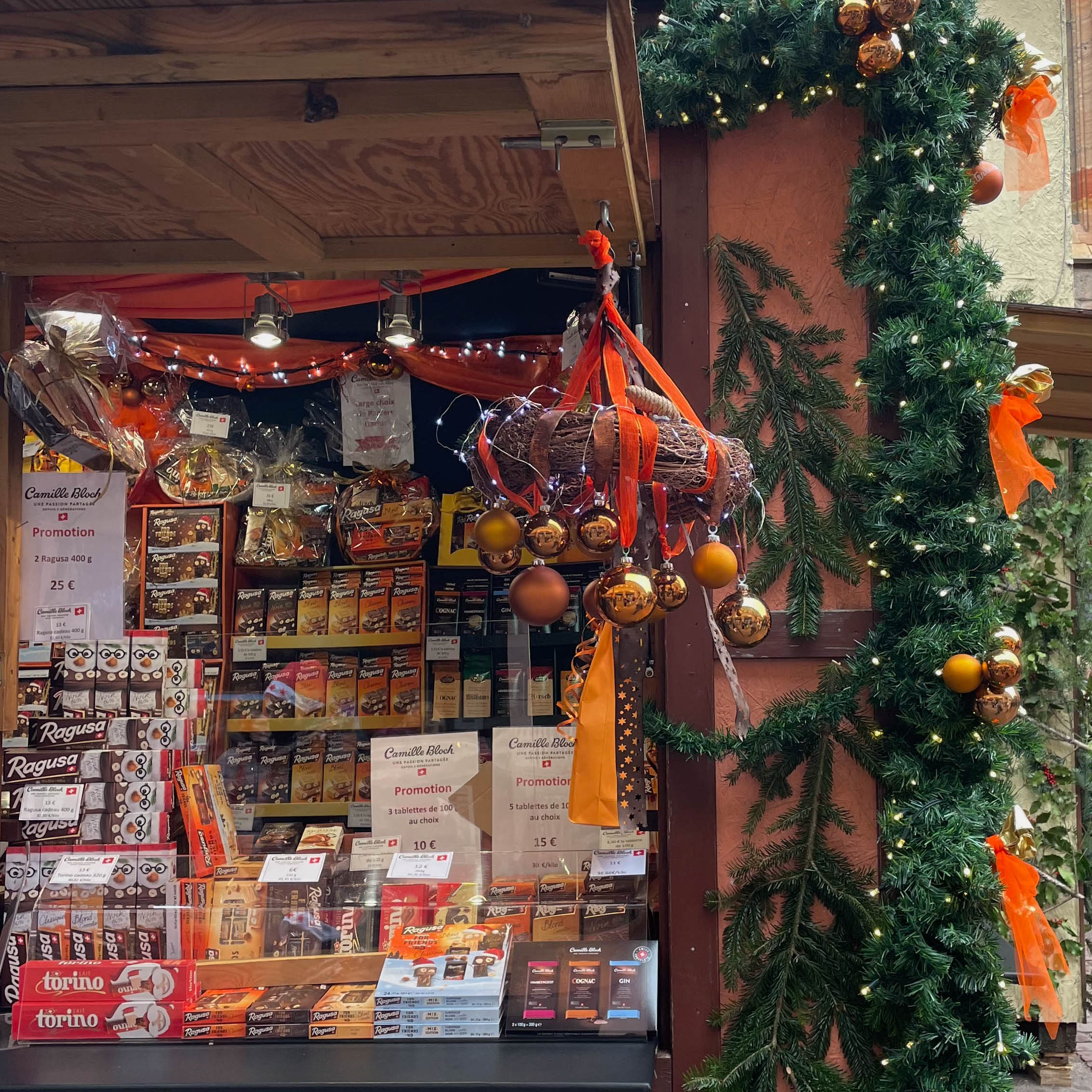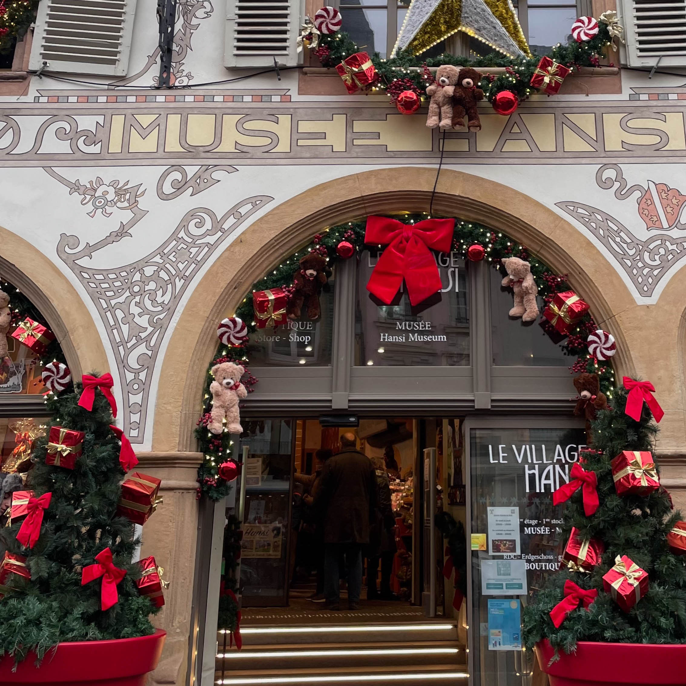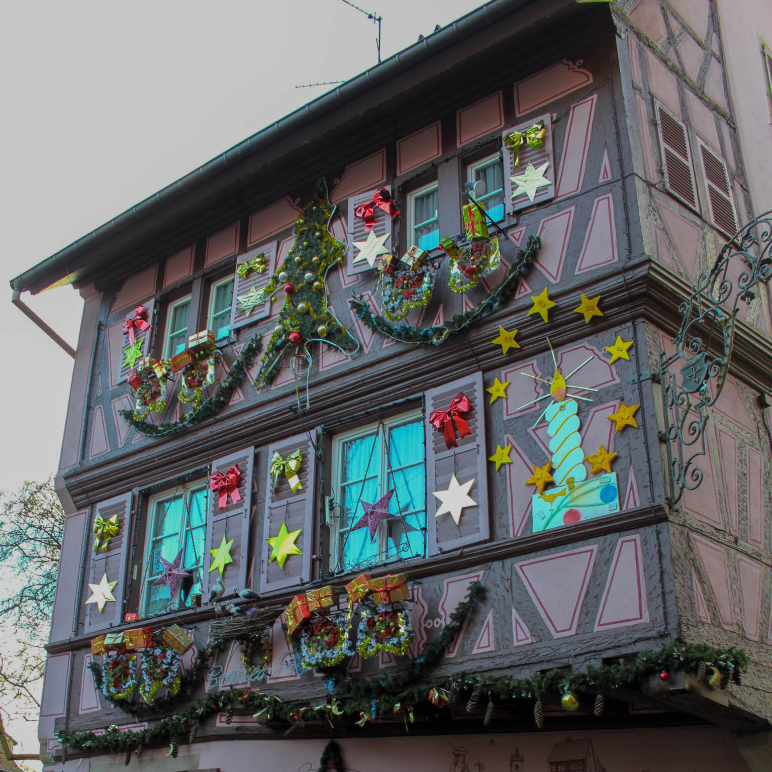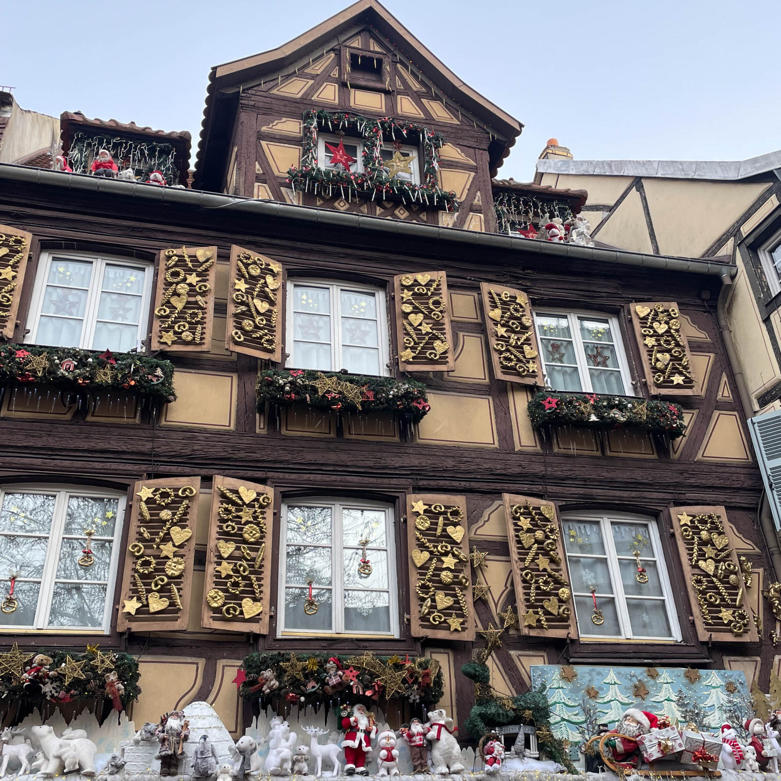 A little further off the main street of Grand Rue, you will find the second most photographed spot in Colmar called “Au Vieux-Pignon”. This famous building is a souvenir shop with a gorgeous façade. During Christmas, you will be able to admire not only its vibrant colors, but also the amazing Christmas decorations. The whole street is extremely charming. If you want to capture it empty, you should get there as early as possible, since it gets even busier than the “Pink House” spot! You should also take a look at the souvenir shop, as it has many adorable souvenirs.