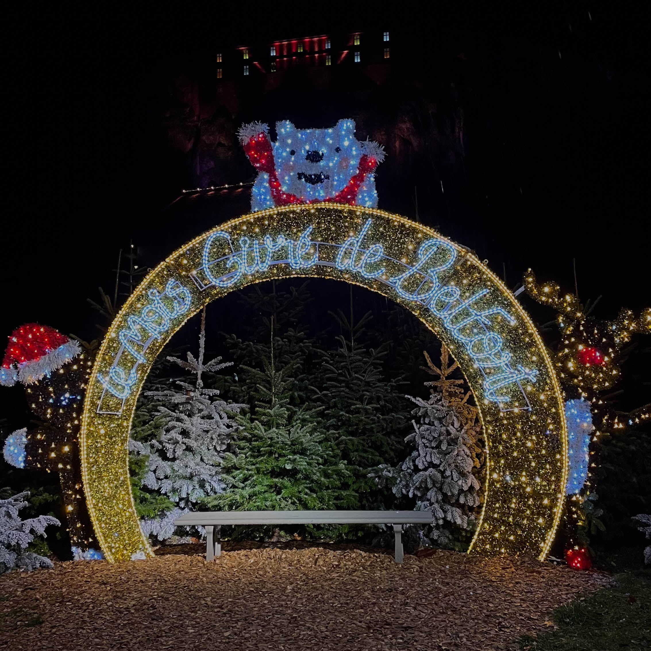 If you only have time to visit one place from Colmar (apart from Strasbourg), we cannot recommend Montbéliard enough. Located about 91 kilometers from Colmar, it can be reached either by car, train, or bus. The famous event “Les Lumières de Noël” (“The Christmas lights” in English) takes place every year in Montbéliard and attracts almost half a million tourists! It is probably the most impressive Christmas event we have ever been to in France, with magical light shows, Christmas ornaments, Christmas markets, etc. The whole atmosphere, the food, and the decorations left us speechless. In case you are traveling with kids, this place is a must.